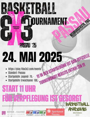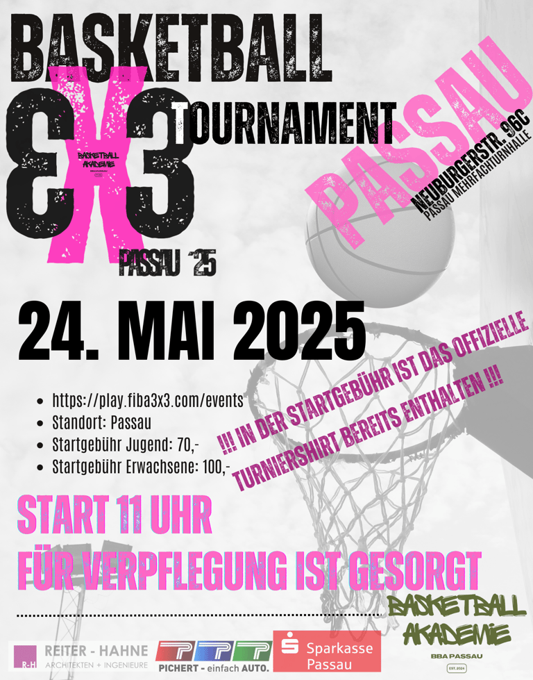 Schnell, trendig und seit den Sommerspielen 2021 in Tokio erstmals im olympischen Programm: Auch 2025 geht die „Bayern 3×3 Tour“ in eine neue Runde – seid diesmal wieder in PASSAU dabei!